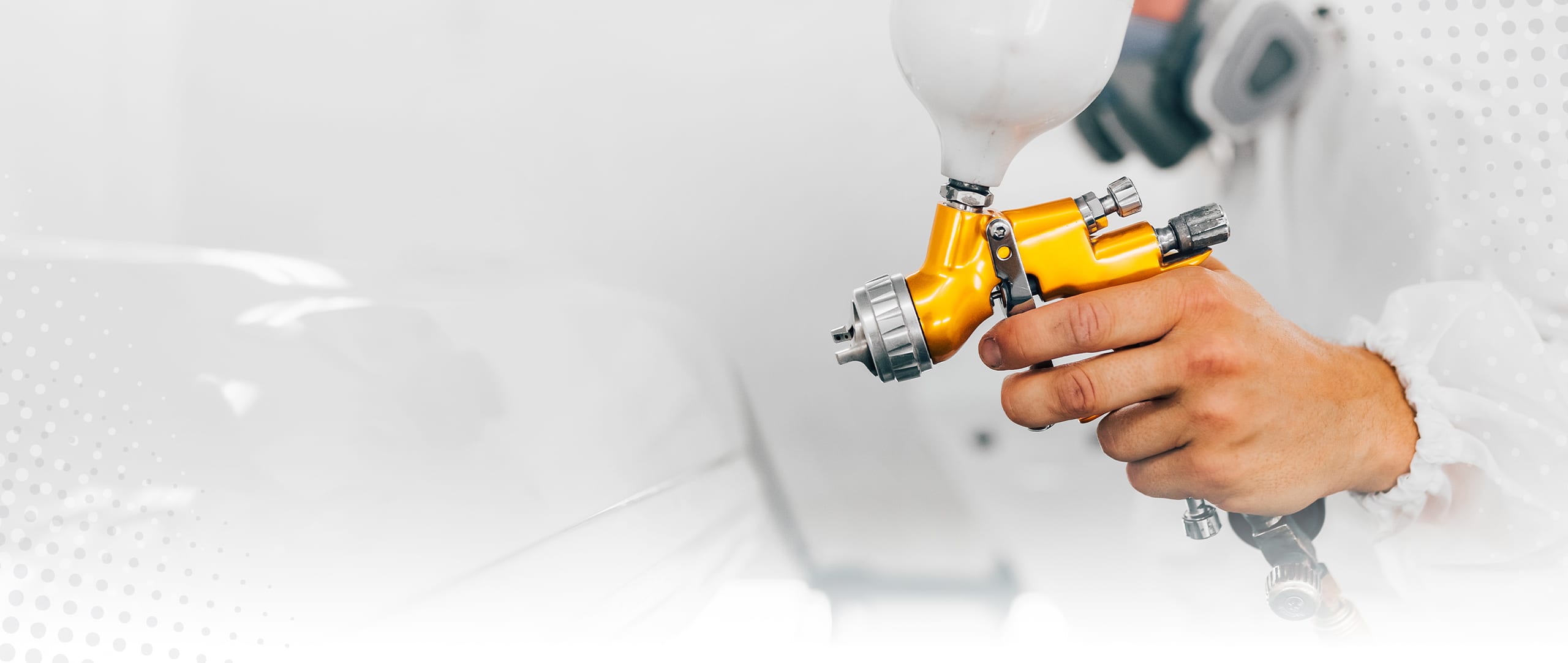 Mitarbeiter der Diebald Lackierung prüft die Oberfläche eines frisch lackierten Kunststoffteils mit einem Messgerät.